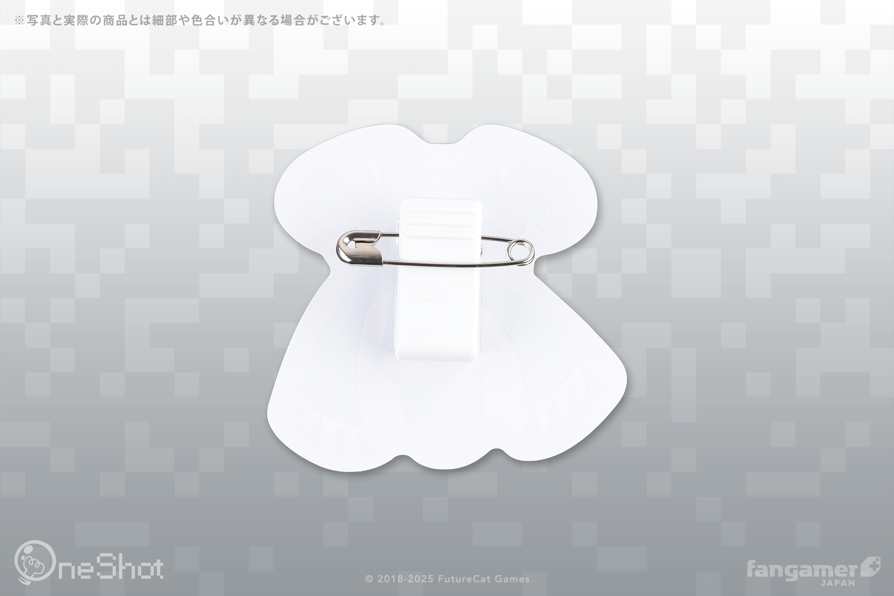 特徴 「Fangamer Japan in GiGO」のキービジュアルをもとに製作されたコラボレーションアイテム。付ける場所に応じて、クリップと安全ピンを使い分けることができます。